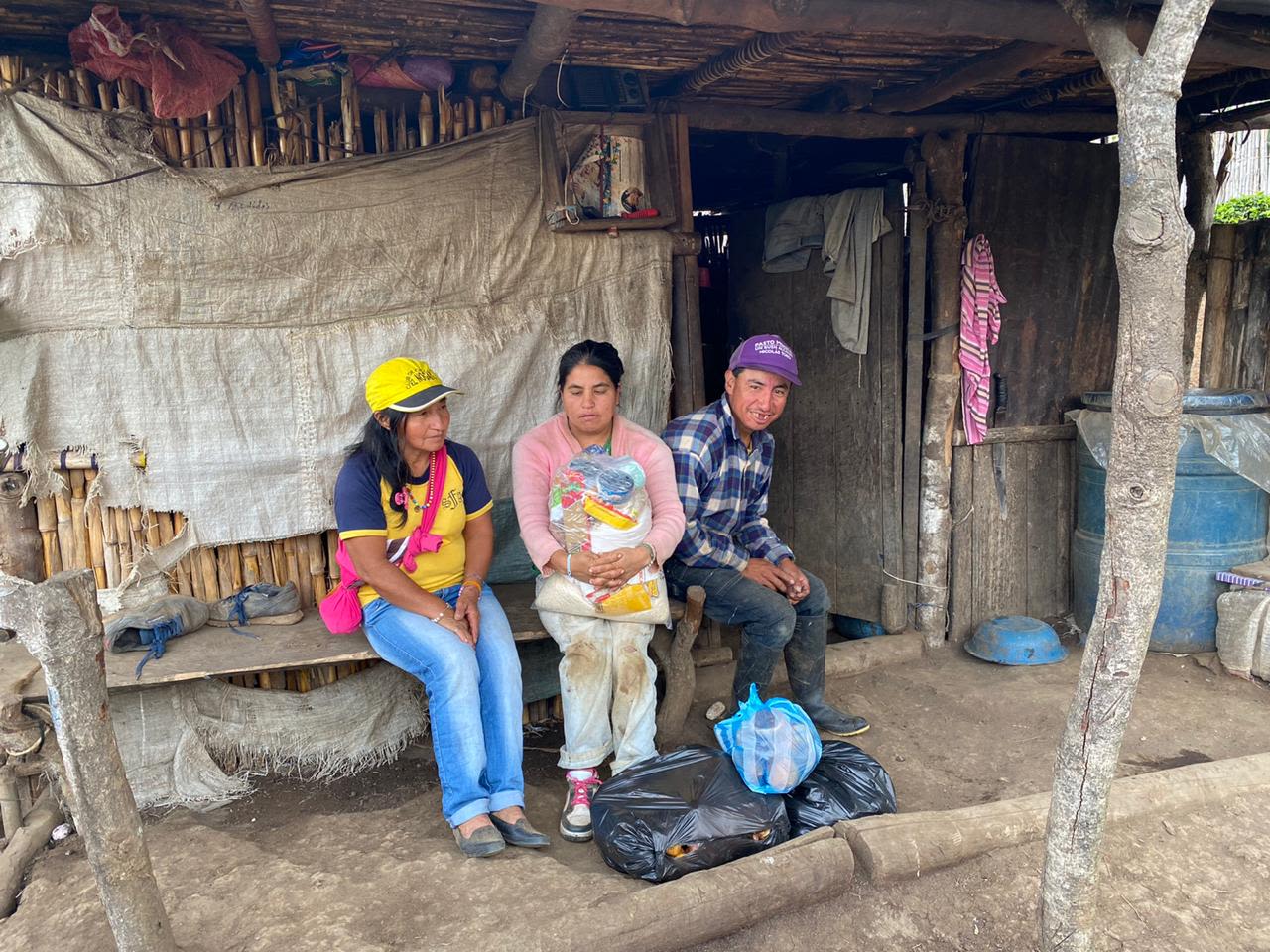 Después de retomar el camino, expuestos al barro y a plantas espinosas llegaron a una de las casas, donde reside una familia humilde y de buen corazón.